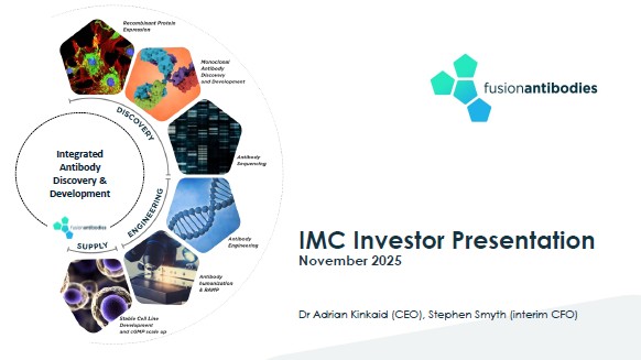 Fusion is a Belfast based contract research organisation ("CRO") providing a range of antibody engineering services for the development of antibodies for both therapeutic drug and diagnostic applications.