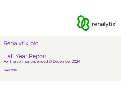 Renalytix (NASDAQ: RNLX) (LSE: RENX) is the global founder and leader in the new field of bioprognosisTM for kidney health. The company has engineered a new solution that successfully enables early-stage chronic kidney disease progression risk assessment. The Company's lead product, KidneyIntelX, has been granted Breakthrough Designation by the U.S. Food and Drug Administration and is designed to help make significant improvements in kidney disease prognosis, transplant management, clinical care, patient stratification for drug clinical trials, and drug target discovery (visit www.kidneyintelx.com). For more information, visit www.renalytix.com.