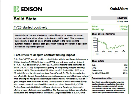 Available Research: https://www.research-tree.com/companies/uk/discretionary-personal-goods/solid-state-plc/SOLI/LON