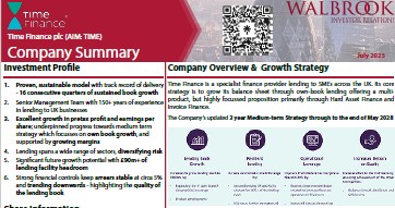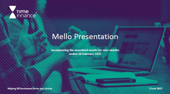 Time Finance's purpose is to help UK businesses thrive and survive through the provision of flexible funding facilities. It offers a multi-product range for SMEs concentrating on Asset, Loan and Invoice Finance. While focused on being an 'own-book' lender, the Group does retain the ability to broke-on deals where appropriate, enabling it to optimize business levels through market and economic cycles