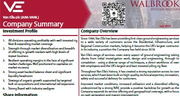 Available Research: https://www.research-tree.com/companies/uk/building-construction/van-elle-holdings-plc/VANL/LON