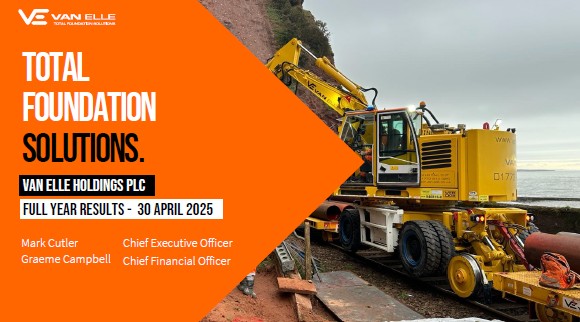 Van Elle Holdings is the UK’s largest specialist geotechnical engineering contractor. Formed in 1984 and listed on AIM in 2016, the Company provides a wide range of ground engineering techniques and services including ground investigation, general and specialist piling, rail geotechnical engineering, modular foundations, and ground improvement and stabilisation services.