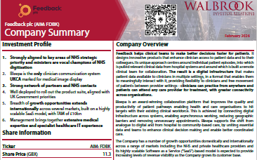 The Company has a number of growth opportunities domestically and internationally across a range of public and private healthcare markets including the NHS. Our highly scalable software-as-a-service (SaaS) based model is expected to provide increasing levels of revenue visibility as the Company grows its customer base.
